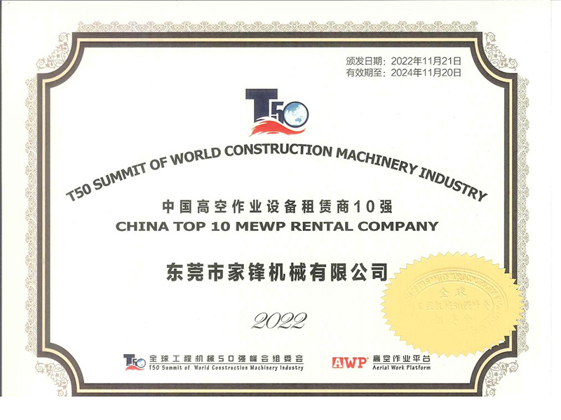 東莞市家鋒機(jī)械有限公司成立于2016年,是專業(yè)的高空作業(yè)平臺(tái)租賃、銷售服務(wù)商,擁有徐工、中聯(lián)、吉尼、捷爾杰等國內(nèi)外知名品牌的高空作業(yè)設(shè)備八千多臺(tái),連續(xù)四屆榮膺“中國高空作業(yè)設(shè)備租賃商十強(qiáng)企業(yè)”及“中國高空作業(yè)平臺(tái)租賃業(yè)十大品牌”,并于2021年首次榮膺“中國工程機(jī)械租賃商十強(qiáng)”,是立足華南、輻射全國、規(guī)模大、服務(wù)優(yōu),極具競爭力和影響力的企業(yè)。短短幾年,已相繼與世界機(jī)械巨頭徐工集團(tuán)、中聯(lián)重科達(dá)成戰(zhàn)略合作。